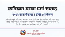 व्यक्तिगत घटना दर्ता सप्ताह सम्वन्धी सूचना ।
