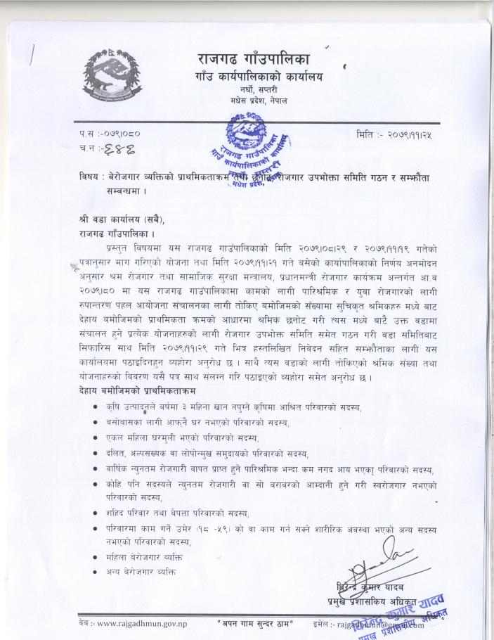» बरेरोजगार व्यक्तीको प्राथमिकता तथा छनौट, रोजागर उपभोक्ता समिति गठन र सम्झौता सम्बन्धमा।